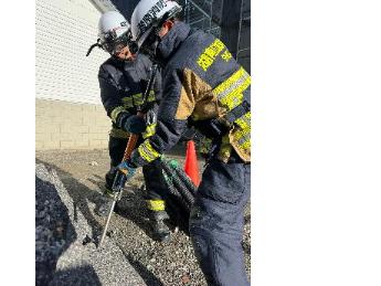 東消防署出張所では令和8年8月まで庁舎の改修工事を実施しています。改修工事で出たガレキや鉄クズを活用し、令和7年12月31日に震災対応訓練を実施しました!