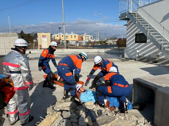 救出訓練では、北消防署出張所の震災救助訓練施設を活用し、実災害さながらの環境で要救助者の救出活動が行われました。