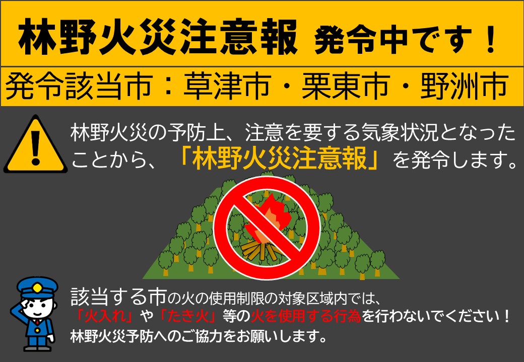 林野火災注意報が発令中です!(発令該当市)草津市・栗東市・野洲市