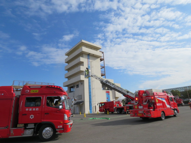 この訓練は、大雨が降っている状況下で南海トラフ巨大地震が発生、湖南広域消防局管内で震度6強を観測、建物倒壊や火災、液状化により多数の要救助者が発生したという想定のもと、県内消防本部、警察、自衛隊、建設業協会などの関係機関が連携し、各種災害に対応しました。