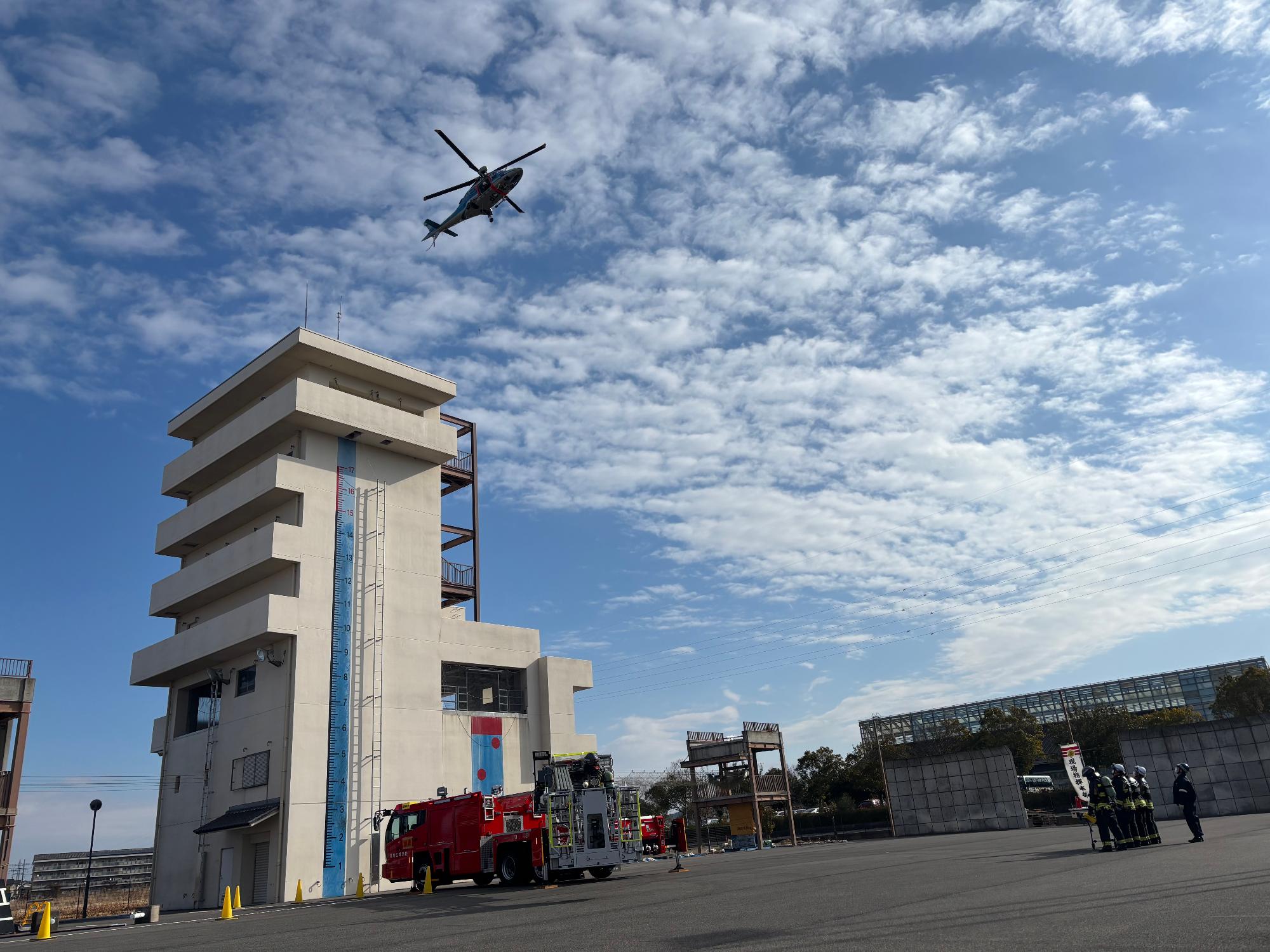 はしご車による放水、救出活動!