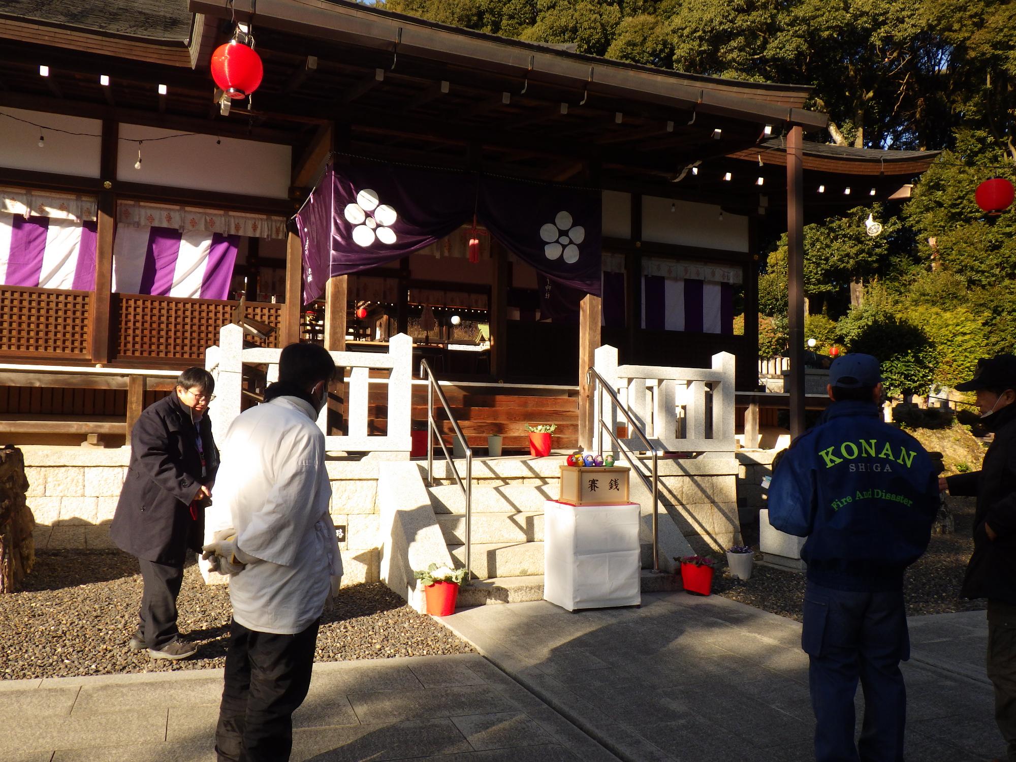 中消防署では、文化財防火運動の一環として、令和8年1月21日に栗東市教育委員会の職員とともに、国指定重要文化財「大野神社 桜門(栗東市)」等の立入検査を実施しました。